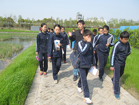 2015年4月14日,太湖大学堂师生一行来到常熟新材料产业园水处理生态湿地参观考察,由德华工作人员徐峰和Sam bircher陪同讲解。